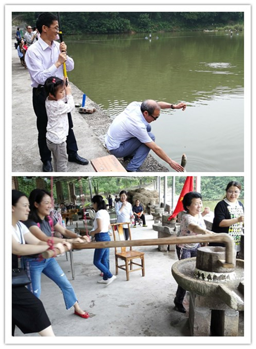 下午两点,老师们一路欢歌笑语来到西山坪张飞古道公园,开展了采摘脆桃、石磨推黄豆、熬豆浆、点豆花、打糍粑、钓鱼等丰富有趣的工会活动。采摘中寻到硕大脆桃的惊喜、推石磨时手脚的不协调、打好糍粑吃的满嘴都是的窘状、钓到大鱼时的得意摆拍……大家亲近自然、享受生活!