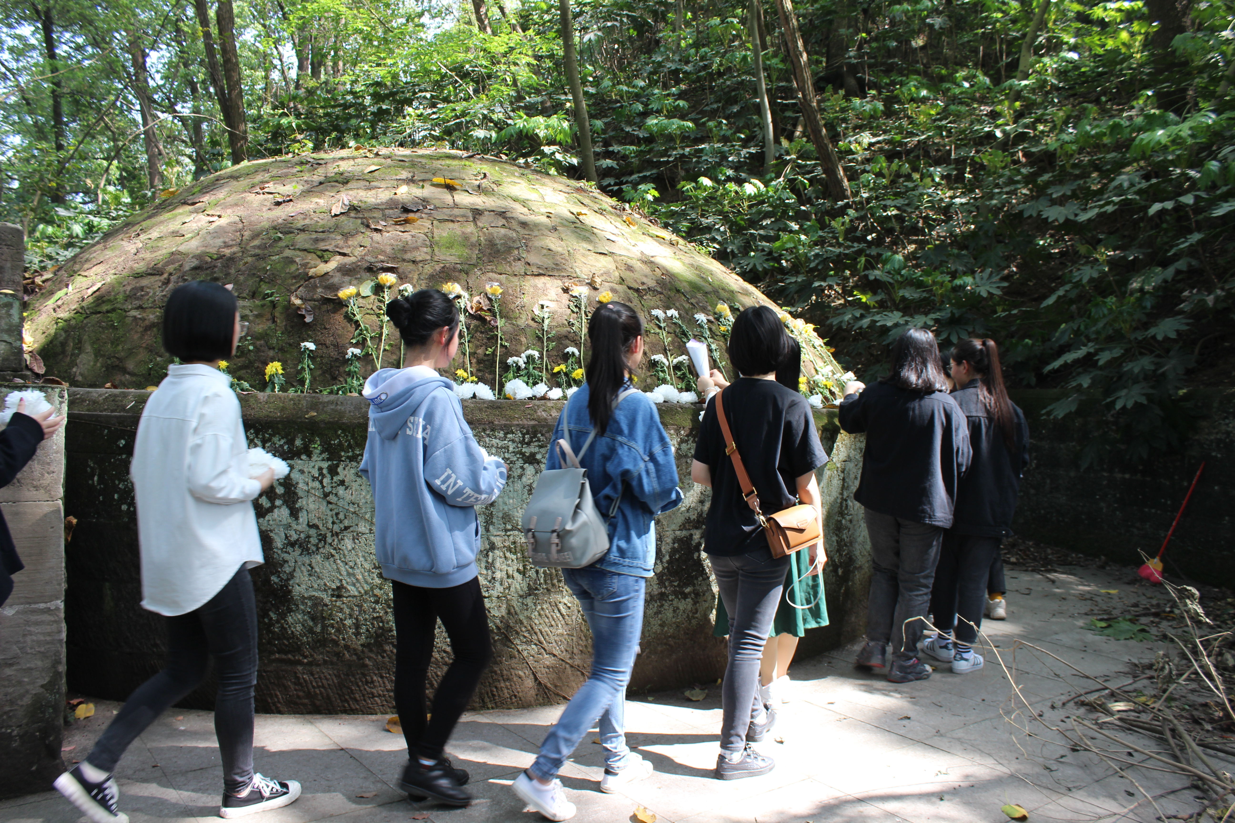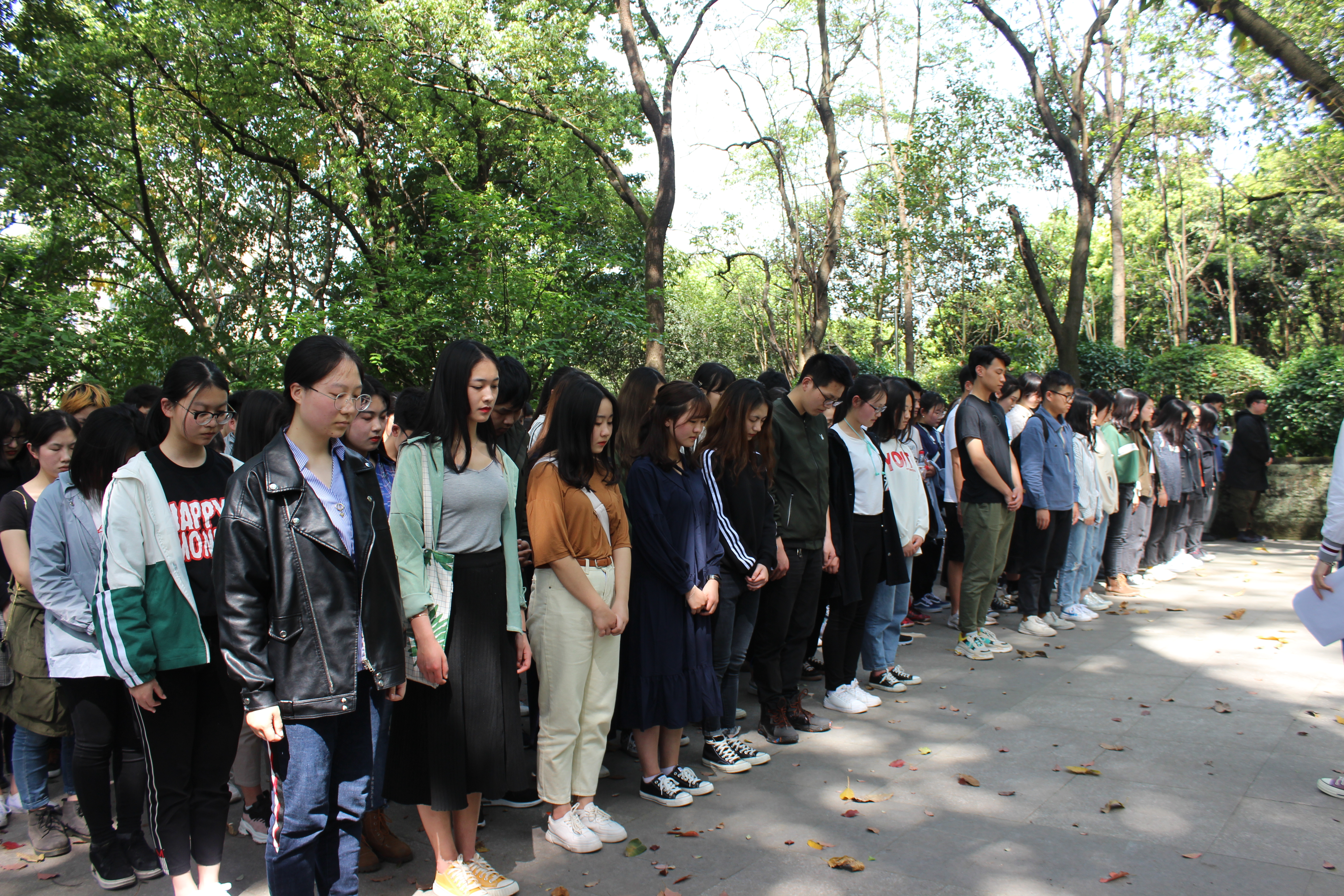 参观结束后,各班级依次在张自忠烈士雕像旁合影留念。同学们表示此次活动非常有意义,他们衷心希望烈士的精神永存人们心间,也希望我们的祖国永远的富强。最后,在组织部带领下,各班整齐有序地离开了张自忠烈士墓。