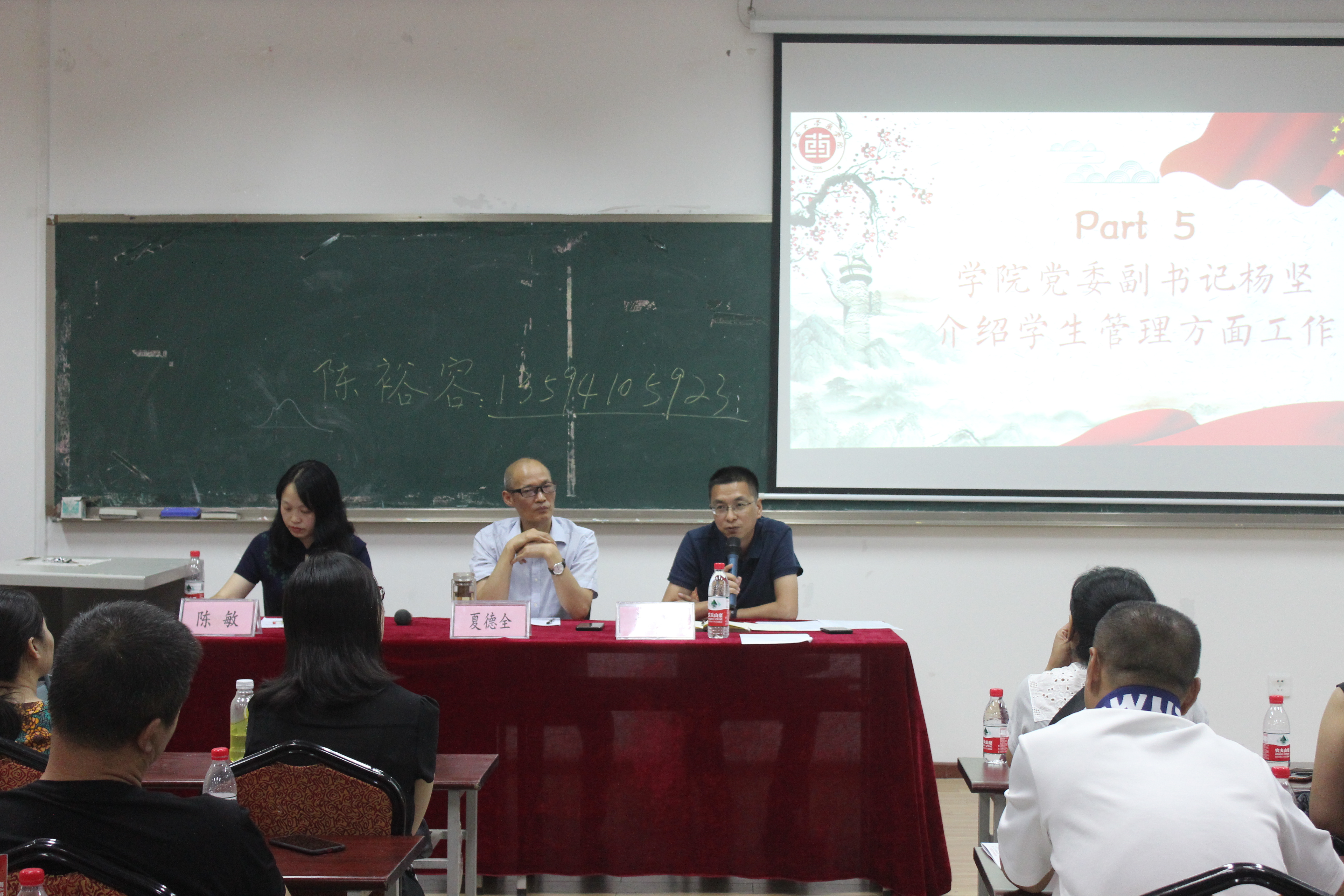 9月6日下午五点,学院2019级新生家长座谈会于38教303顺利举行。出席本次座谈会的领导有学院党委书记夏德全、党委副书记杨坚、副院长陈敏,除此之外还有2019级班主任和新生家长代表。