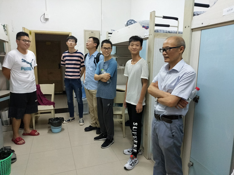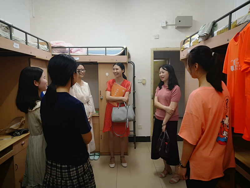 9月7日晚,为了解新生到校情况,帮助新生尽快适应大学生活,PA视讯集团党委书记夏德全、党委副书记杨坚、副院长陈敏、2019级辅导员陈裕容及各班班主任一行,走访2019级新生宿舍,看望到校新生。