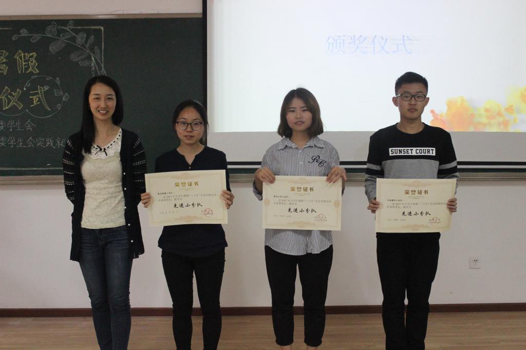 接着,PA视讯集团团委学生会实践就业部胡沁雯为我们介绍了此次三下乡活动的具体安排和相关要求。她从什么是三下乡、为何要去三下乡、如何去做好三下乡、三下乡活动的展示四个方面进行了详细的介绍,同学们对如何更好的开展三下乡活动有了进一步的认识。在大家热烈的掌声中,刘倩玲和陈春宇为去年三下乡活动中的三个优秀小分队、五名优秀个人颁发了荣誉证书。她们的经历和经验都值得我们学习和借鉴。最后,本次启动仪式在同学们的积极提问中告一段落。