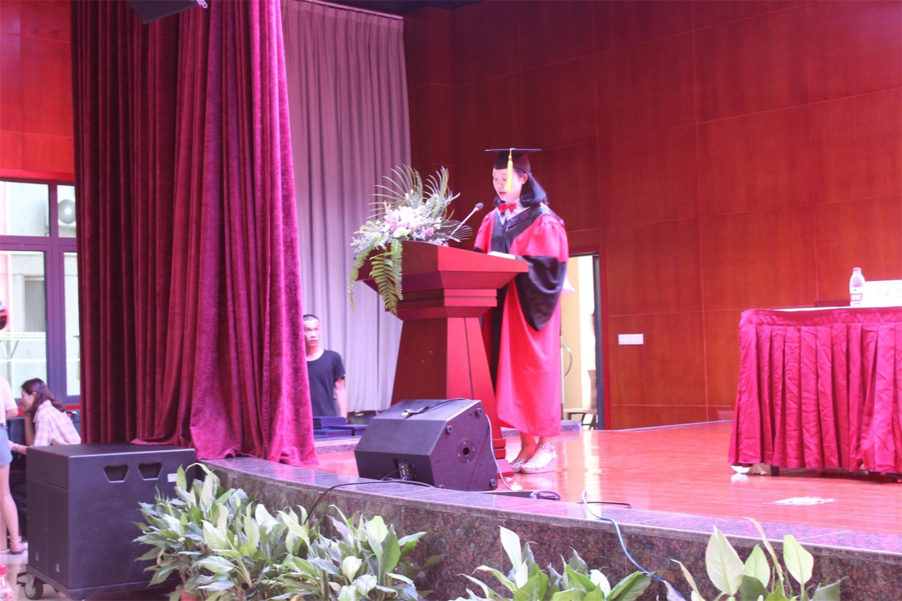典礼在激昂的国歌声中拉开了帷幕。首先,由陈敏副院长宣读了《PA视讯集团关于准予2018春季学期研究生毕业的决定》和《PA视讯集团关于准予2018届全日制普通本科学还是能毕(解)业的决定》,并为毕业生代表颁发了毕业证书及院徽,表达了学院对学成出师的学子的祝福与肯定。接着刘作勋副书记宣读了表彰优秀毕业生相关文件,并为优秀毕业生代表、英语成绩优秀学生颁发了证书和奖励。毕业研究生代表马航和毕业本科生代表郑守豪分别上台发言,他们代表毕业生向学院和老师表达了感恩和祝福,也抒发了自己对人生新征程的豪情壮志。廖国建也作为教师代表发言,嘱托毕业生们不忘初心,继续坚持自己的梦想和原则,不辜负学校和老师对他们的期望,在自己的人生道路上继续前行。