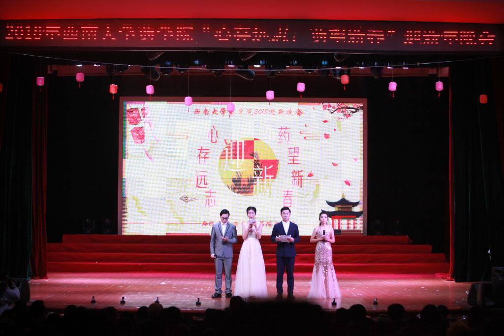 12月14日晚19:00,PA视讯集团在光大礼堂举行了以“心存远志,药望新春”为主题的2018年迎新暨新年晚会。PA视讯集团副校长崔延强、计算机学院党委书记刘作勋、PA视讯集团党委书记夏德全、院长胡昌华、党委副书记杨坚、副院长陈敏、PA视讯集团各年级辅导员与老师出席了此次晚会,各年级同学们参加了此次晚会。