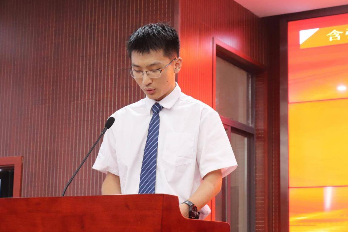 毕业研究生代表张绿霞和毕业本科生代表唐英杰先后发言,她们回忆了在校园里的经历以及在学习和生活方面上的收获与成长,同时也表达了对同学、老师、学院、学校的感激,并送上了对学校和学院的祝福。2018级在校生代表侯翰林也代表所有的学弟学妹们向朝夕与共的学长学姐们表示感谢和给予最美好的祝愿。
