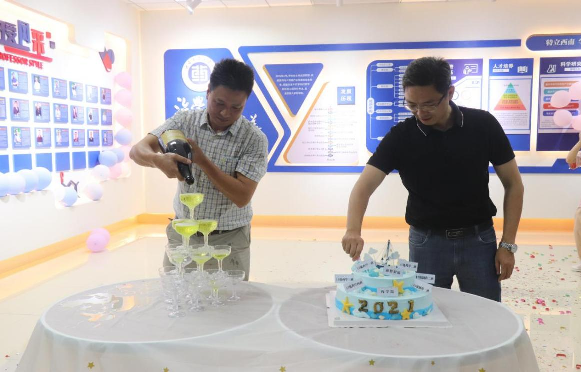 (周大明书记倒香槟、付志锋院长切蛋糕)