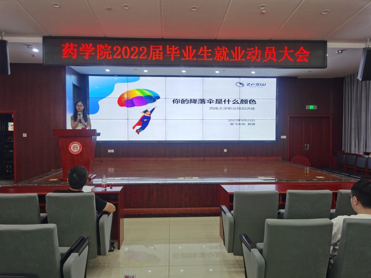 为了让同学们更好的规划自己的职业道路,学院特别邀请了智飞生物为大家做就业指导,智飞生物人力资源副总监赖倩女士为同学们做了一场精彩的职业规划讲座——《你的降落伞是什么颜色》。