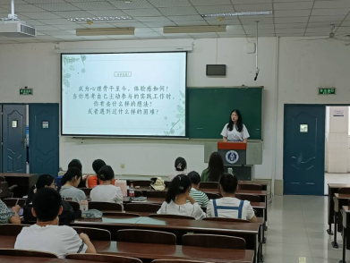 培训会上,代金雨欣老师从心理骨干的角色与定位,心理危机的识别与干预,如何成为一名支持型倾听者,团体心理辅导四个方面展开,通过PPT内容的展示和讲解,为同学们普及了相关心理知识,让心理骨干们进一步明确了自己的工作内容,学会了如何去发现并帮助同学们解决心理问题。