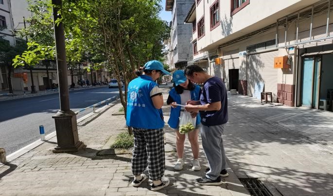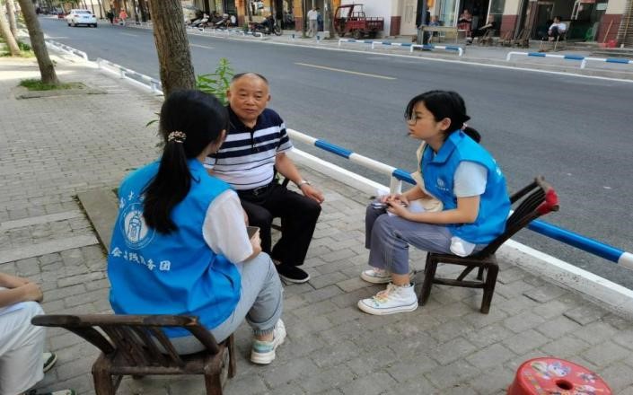 实践团成员在黄水迎宾南路街道上进行问卷调研