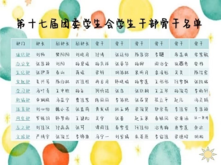 其他部门也汇报了本学期的工作安排,向大家分享了本学期的工作重点,阐述了各部门的职责与主要工作内容,同时对新鲜血液的加入表达了期待。