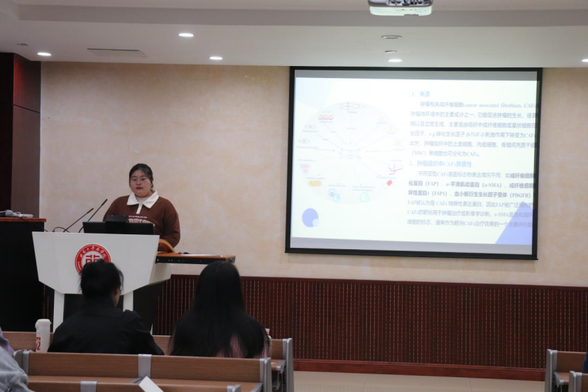 本次“未来药学家”成长论坛聚焦药学前沿问题,讨论当今时事。八位同学围绕着“药院学子看前沿”“学习党的二十大精神”“新型抗肿瘤药物的合理使用”“医院创新药学服务”四个主题进行了PPT演讲。他们的精彩阐述带我们学习了自信自强、踔厉奋发的党的二十大精神,带我们了解了目前抗肿瘤药物的研发进展和医院创新药学服务的概况。药院学子声情并茂、神采飞扬地为我们展示了他们的理解与思考,在现场营造了浓厚而亲切的学术氛围。