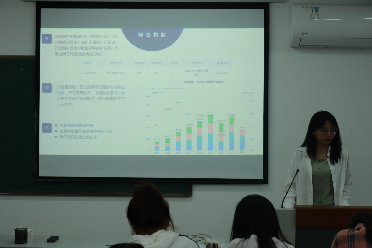 本次论坛,同学们围绕“药院学子看医药前沿”“改良型新药的开发进展”“生物制药的趋势和挑战”“平急结合体系下的药学角色定位与作用”四个主题进行PPT演讲。同学们通过激情洋溢的演讲,表达自己对于药学领域未来发展趋势和目前所面临的挑战的一些思考。同时,选手们也可以通过别人的观点,从另一个角度更加全面地了解医药前沿、改良型新药的进展等。在演讲过程中,选手们很好地展示了药院学子的风采,营造了浓厚的学术氛围。