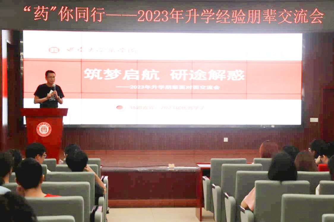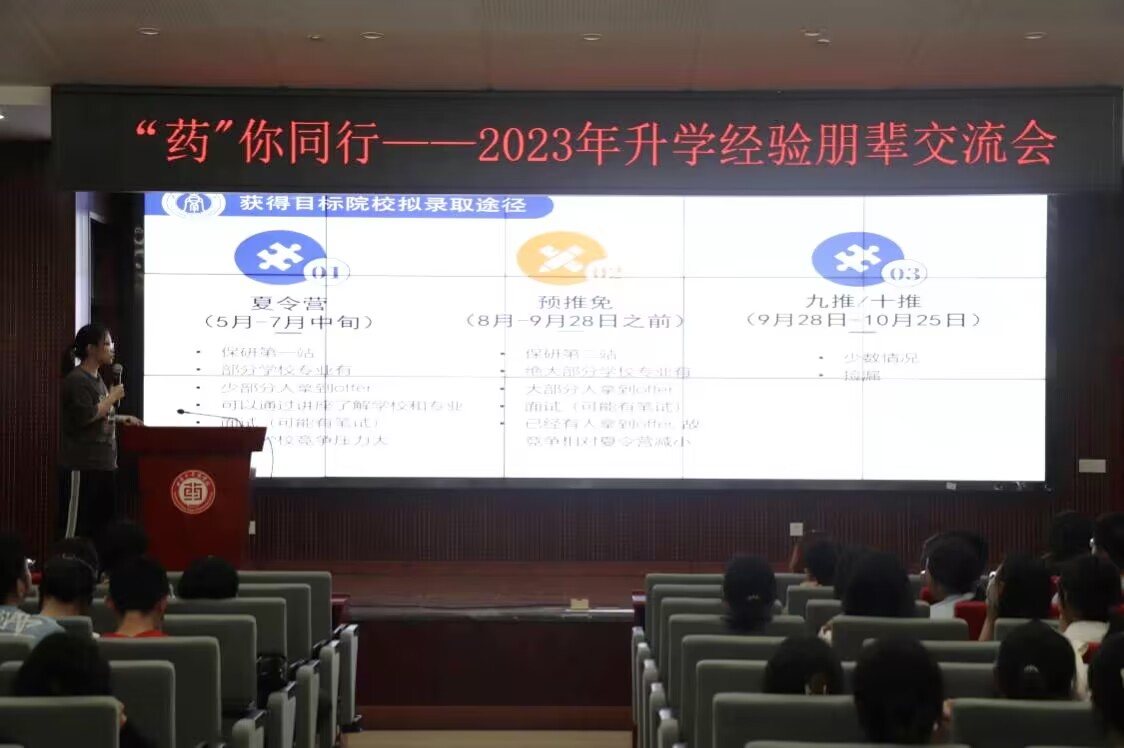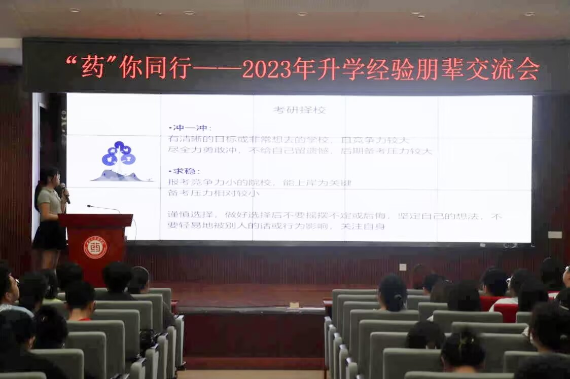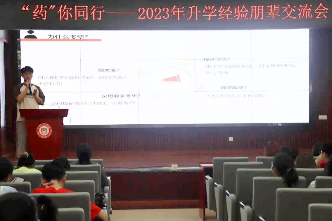 5月17日19:30,学院在B113报告厅召开了“就业领航|研途解惑,“药”你同行——2023年朋辈升学经验交流会”。PA视讯集团党委副书记、2020级辅导员杨坚,PA视讯集团2019级升学代表、全体2020级全体学生参加了此次交流会。