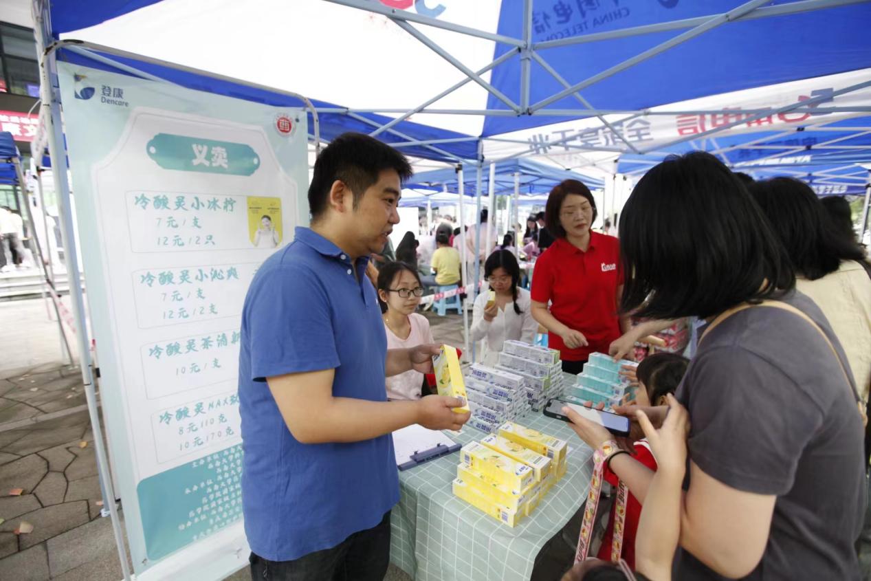 本次活动还联合重庆希尔安药业和重庆登康口腔护理用品股份有限公司共同发起健康义诊、爱心义卖活动,企业无偿捐助的饮品、药膏和牙膏所卖款项都将购买成图书,捐助给石柱黄水小学建立图书角,在六一儿童节到来之际,为孩子们送去节日的祝福和健康。