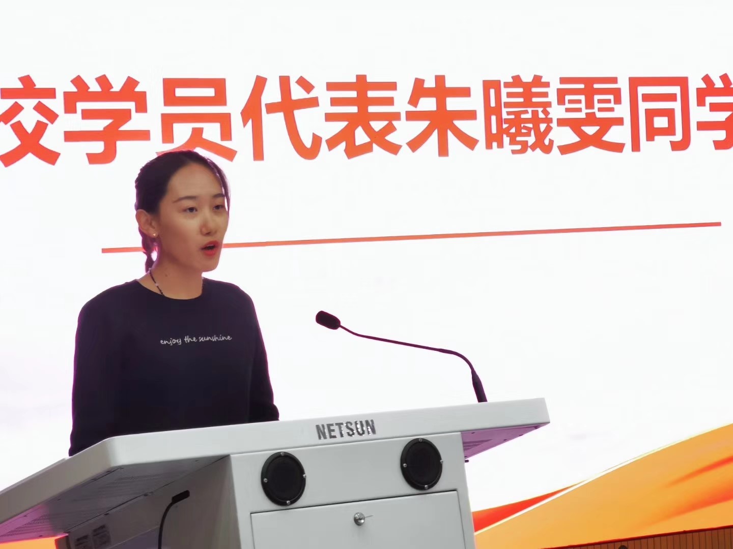 党校学员代表朱曦雯同学发言,她表示要珍惜这来之不易的学习机会,认真学习党的光辉历史,汲取其背后的智慧和精神。朱曦雯同学代表本期党课学员做出了承诺:遵守学习纪律、严格按照学习要求在实践中锻炼成长。