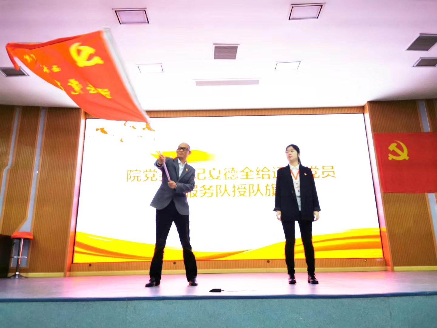 学院党委书记、分党校校长夏德全讲话。夏德全书记在讲话中指出:没有正确的理论,就没有正确的行动。每一位渴望加入党组织的同学应通过党校学习和自学,自主深入学习、认识、领悟党的先进思想,认真学习党章、党规、党史、习近平新时代中国特色社会主义思想,深刻领会十九大精神,将理论与实践结合。通过学习,不断改造自己的世界观、人生观和价值观,进一步提高对党的认识,坚定理想信念,坚定‘四个自信’,努力把自己培养成为一名合格的共产党员。夏德全书记对党员服务队提出了要求,希望服务队成员以身作则,带头示范,带动更多有理想、有担当、有能力的同学共同进步,使远志党员服务队精神成为学院鲜明的旗帜。随后,院党委书记夏德全为远志党员服务队授旗。