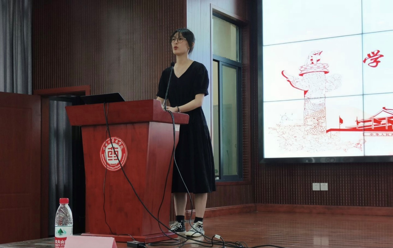 第十八期党校学员代表贾贺元同学进行发言,她讲述了自己对中国共产党的深厚情感,对此次党校培训的期待,同时,她代表全体党课学员承诺要珍惜此次党课学习机会,用党的思想指导实践,严格按照党的章程要求自己,努力学习成为一名合格的党员。