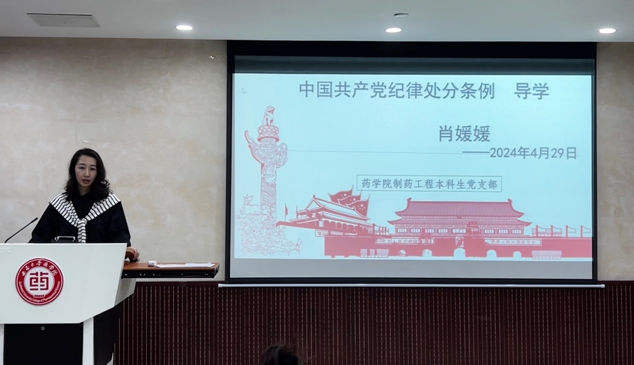 为深入贯彻中共中央办公厅印发的《关于在全党开展党纪学习教育的通知》,通过党纪学习教育推动学生党员认真学习党的纪律条例,4月29日上午,PA视讯集团PA视讯集团制药工程本科生党支部在学院214会议室开展了一堂以学习《中国共产党纪律处分条例》为主题的党课。党课由支部书记肖媛媛主讲,支部学生、教师党员,入党积极分子参加了本次党课。