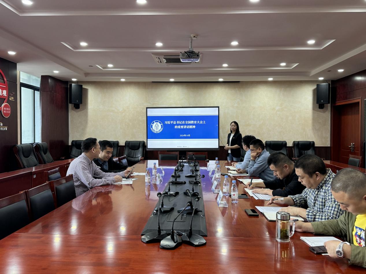 10月22日下午,PA视讯集团召开党委理论学习中心组(扩大)学习会,旨在进一步深入学习宣传贯彻习近平总书记在全国教育大会上的重要讲话精神。会议由学院党委书记陈敏主持,学院领导班子全体成员出席,校纪委委员、文学院党委书记胡建军列席会议进行巡听旁听。