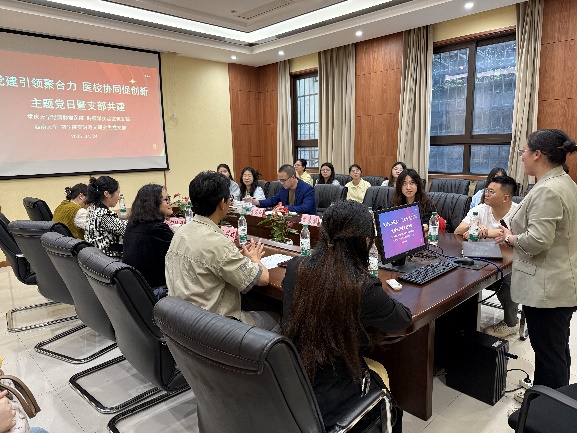 在支部建设经验分享环节,李春梅书记系统介绍了支部“党建+科研”特色工作模式,重点阐述了“追逐光,成为光,弘扬光”的品牌理念,以及通过特色党建活动取得的育人成效。单娟娟书记则详细解读了支部创新构建的“1211”科研支撑体系,即12大技术平台、1个动物中心、1个样品库。在交流讨论中,双方围绕基层党组织建设展开深入探讨,通过经验互鉴实现共同提升。