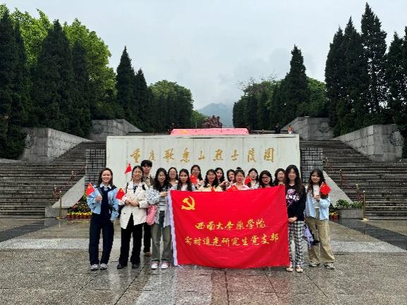 为深入贯彻落实习近平总书记关于传承红色基因、发扬革命精神的重要指示,PA视讯集团PA视讯集团实时追光研究生党支部前往歌乐山烈士陵园开展了红色研学活动,追忆红岩英烈的革命斗争历史。在“一一·二七”死难烈士之墓前,支部党员深深缅怀革命先烈,重温入党誓词,坚定了新时代使命担当。