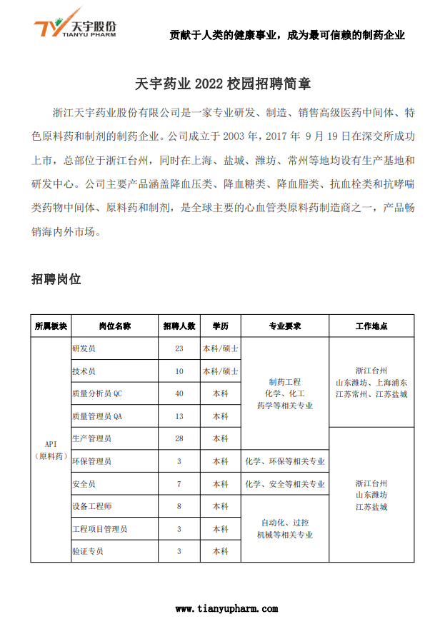 浙江天宇药业股份有限公司