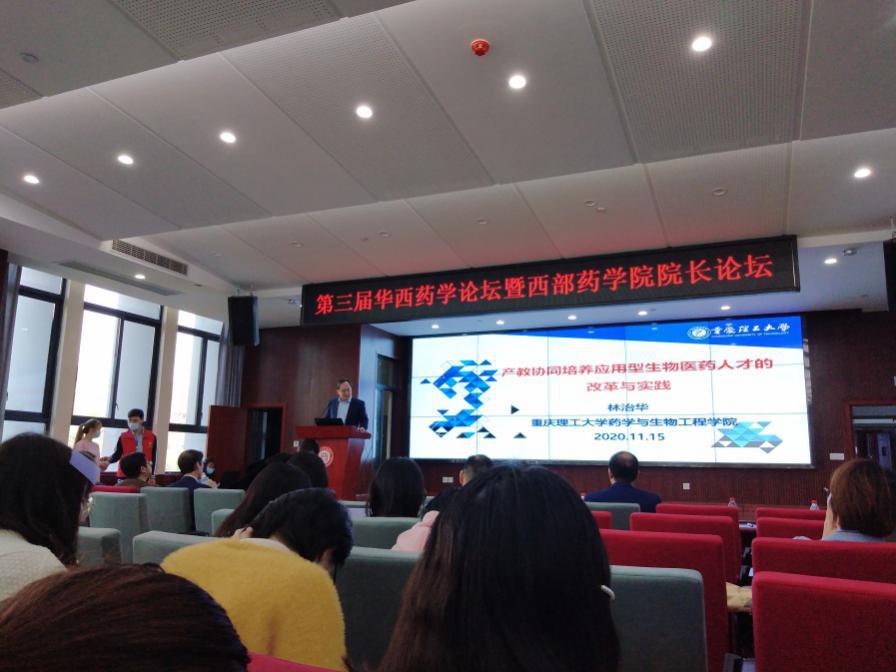 林治华,重庆理工大学药学与生物工程学院院长,教授。在报告中,林教授首先介绍学院的发展历史沿革,然后重点讲述了重庆理工大学PA视讯集团在师资队伍建设、科研团队建设、平台建设等方面的内容。其次介绍了人才培养举措:通过重视创新创业,实施科研导师制以及创办生物医药文化节等方式,来提升学生的科研兴趣;通过与校企协同育人,实现精准培养应用型人才。最后对学院的发展做出总结,并分享了治学经验。