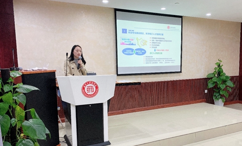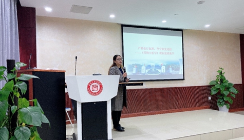 学院肖国君老师做了题为《严格执行标准,坚守职业道德》的主题报告。她首先从吉林长春长生生物疫苗事件引出药品质量安全问题与人们的生命和健康密切相关,详细阐述了课程思政的性质、内涵和目标;并对《药物分析学》课程思政的要素挖掘、设计流程、教学方法进行了详细讲解。