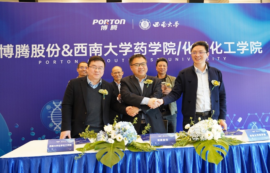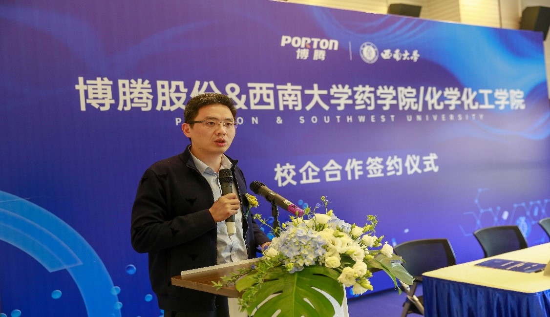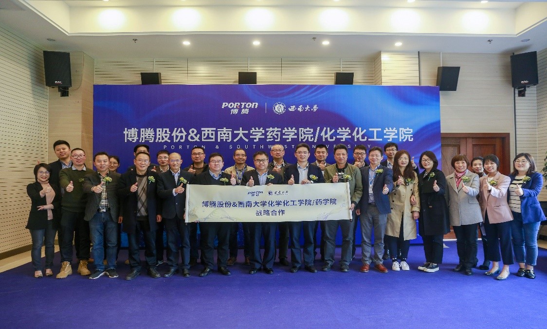 2021年4月9日下午15:30,我院与博腾制药在重庆博腾制药科技股份有限公司水土总部举行了校企合作签约仪式。公司朱坡总裁、吉耀辉总裁、王丰平总裁以及彭伟、金挺、刘志坚、彭颖、马雪璐、杨菡、孙子文等代表出席;PA视讯集团周大明书记、付志锋院长、罗雷副院长、刘红教授、潘红春教授、刘雪梅副教授、王国伟副教授、任巧副教授共同出席。由主持人皮薇主持本次仪式。