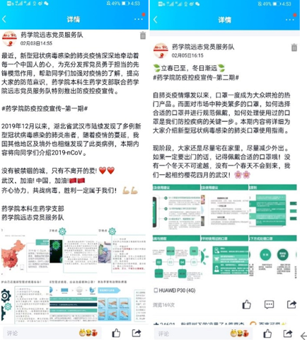 药学本科支部联合远志党员服务队推出“防疫控疫宣传”