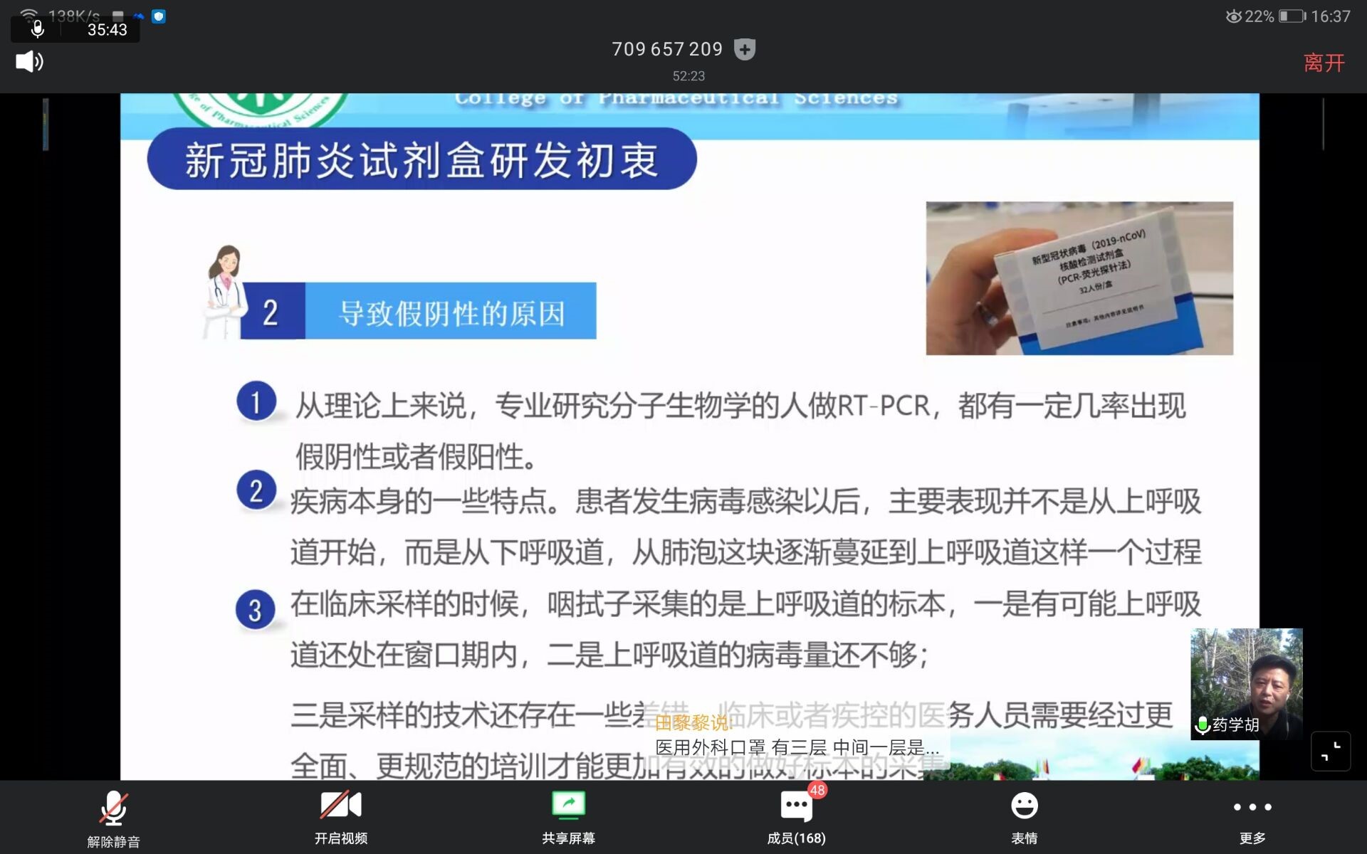 第二部分,胡院长给我们分享了新冠肺炎抗体检测试剂盒研发的的初衷和原理,以及艰辛的研发过程,并重点讲述了目前新冠病毒核酸检测存在假阴性的原因,他从概率学,疾病发展特点,临床采样过程三方面分析了导致假阴性的原因,也提醒我们要多留意不明原因的失败,尤其是实验过程中的,这样我们能更好的改善和改进实验从而取得好的结果。