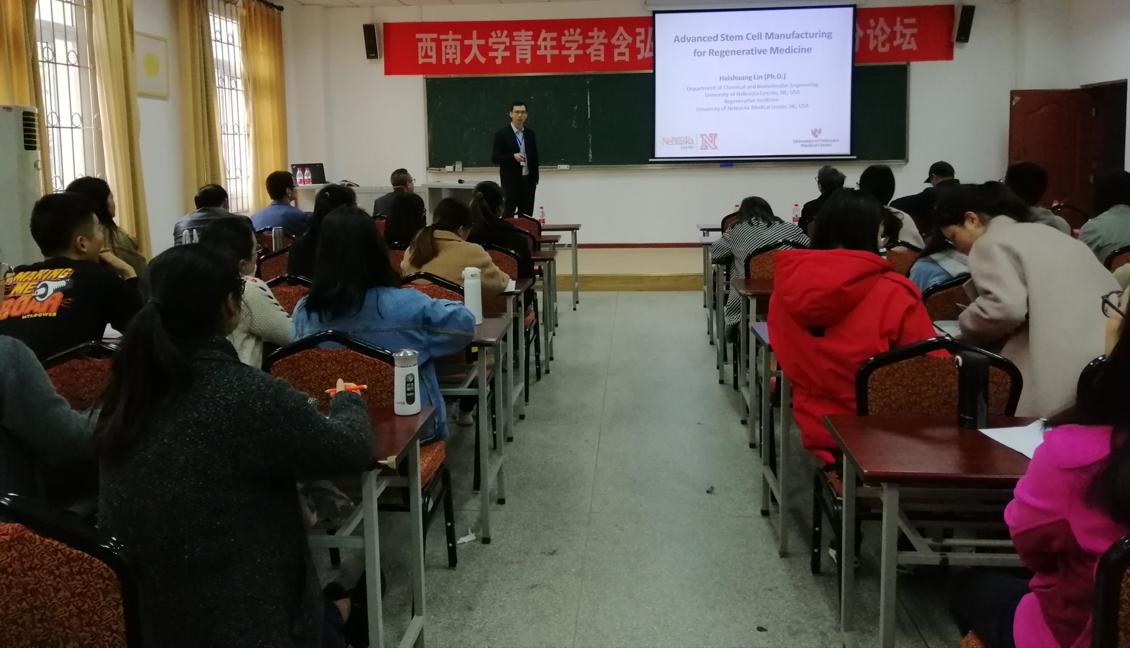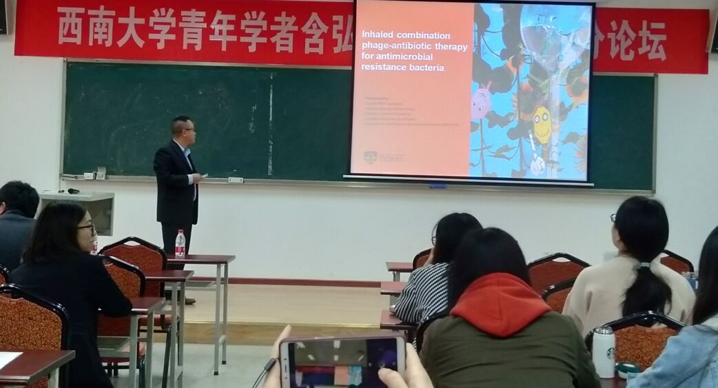 美国内布拉斯加大学的林海双博士作题为“先进的干细胞制造技术用于再生医学研究”的报告,指出人诱导多潜能干细胞(hPSCs)对于细胞治疗、组织工程等是非常有前景的细胞来源,但目前的培养体系在生产大量高质量的hPSCs及其来源的体细胞非常有挑战,因此他利用低成本的海藻酸盐设计一个新颖的细胞培养体系---藻酸盐水溶胶管。美国University of Nebraska – Lincoln的李善仁博士在“激活微生物中沉默基因簇发现新型天然产物的研究”的报告中,以海洋链霉菌和产酶溶杆菌为例,通过激活沉默基因簇发现新型代谢产物的研究,为发现微生物中新型天然产物开辟了新途径。悉尼大学的林羽博士作题为“吸入递送抗生素和噬菌体复方治疗肺部耐药菌感染”的报告,认为呼吸道耐药菌感染在全球范围内属于未被满足的临床需求且是一个亟待解决的问题,指出作为抗生素的三大替代手段之一,噬菌体治疗具有针对性强,对抗生素耐药菌敏感的优势。