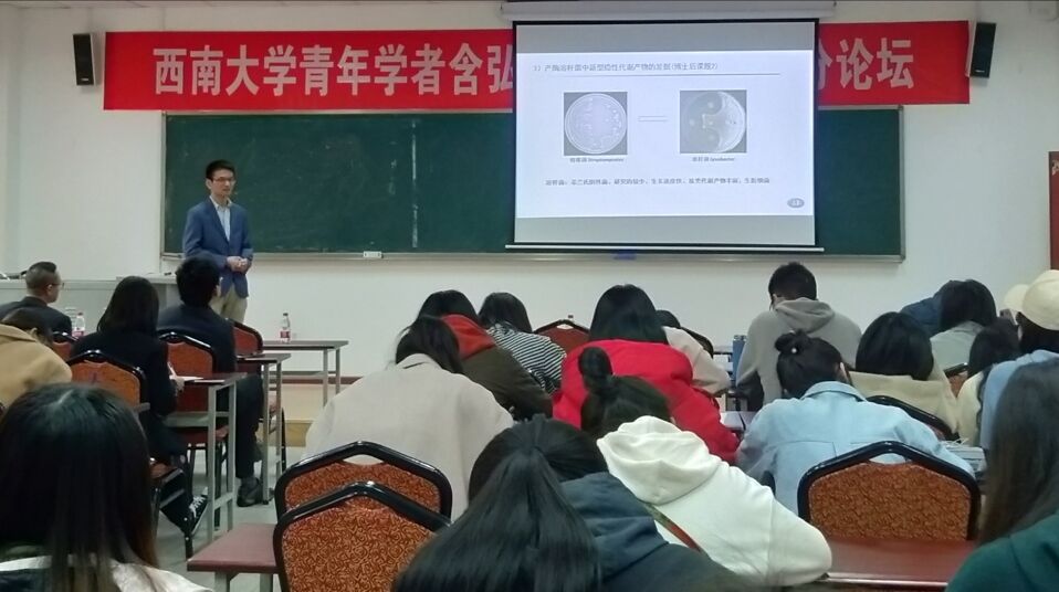 付志锋教授首先对三位报告人表示欢迎,并介绍了学院的发展现状及取得的成绩。他指出PA视讯集团是一个充满朝气、蓬勃向上的学院,目前拥有药学实验教学示范中心和药学虚拟仿真实验教学示范中心2个国家级实验教学中心,学院现有2个重庆市高校创新团队,有教育部重点实验室,重庆市重点实验室和重庆市2011协同创新中心各1个,其他省部级科研平台5个,与企业合建工程技术研究中心2个,并强调学院一直高度重视人才工作,期待三位青年才俊加入PA视讯集团,共同书写新时代PA视讯集团的奋进之笔。