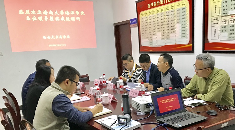 邓世明副院长首先从办学历史、专业设置、师资队伍、学生构成等方面对海南大学海洋学院作了简要介绍,并表示,此次调研主要学习我院药学专业认证的成功经验,以及先进的本科教学管理理念等。