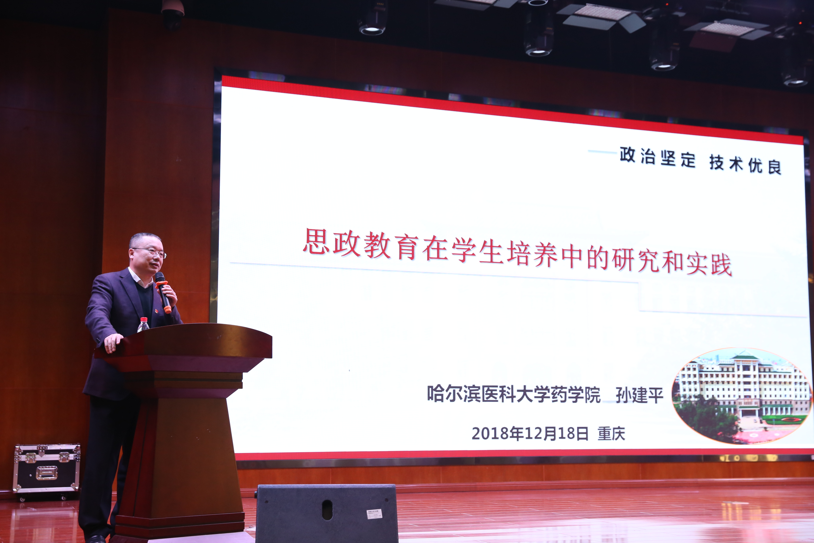 哈尔滨医科大学PA视讯集团党委书记孙建平教授以“思政教育在药学专业学生培养中的研究与实践”为题,结合药学学生特点,从专业教育、人文精神、大数据应用等全新视角探讨了药学人才培养中思想政治教育问题。