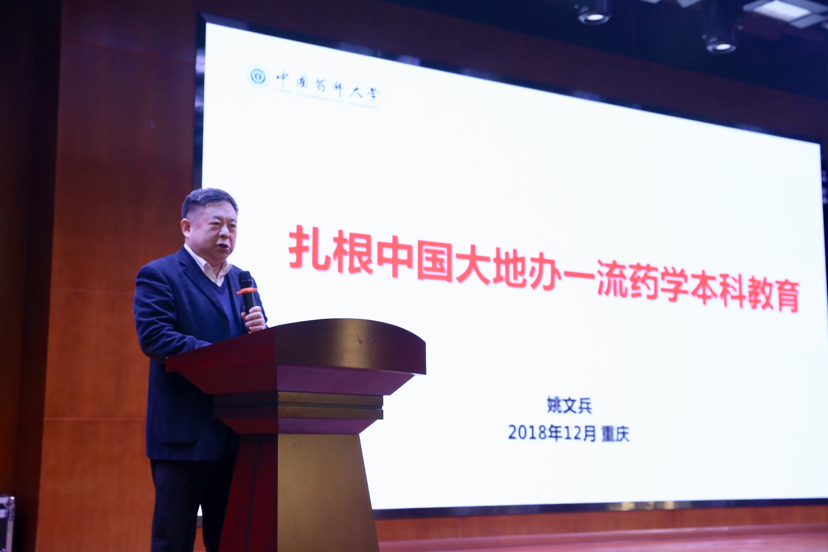 报告会上,教育部药学类专业教学指导委员会主任委员、中国药科大学副校长姚文兵教授作了主题为“扎根中国大地办药学一流本科教育”的报告,姚文兵教授从中国高等药学教育发展历程、中国高等药学教育办学规模现状、中国高等药学一流本科教育发展思路等方面进行了详细介绍。