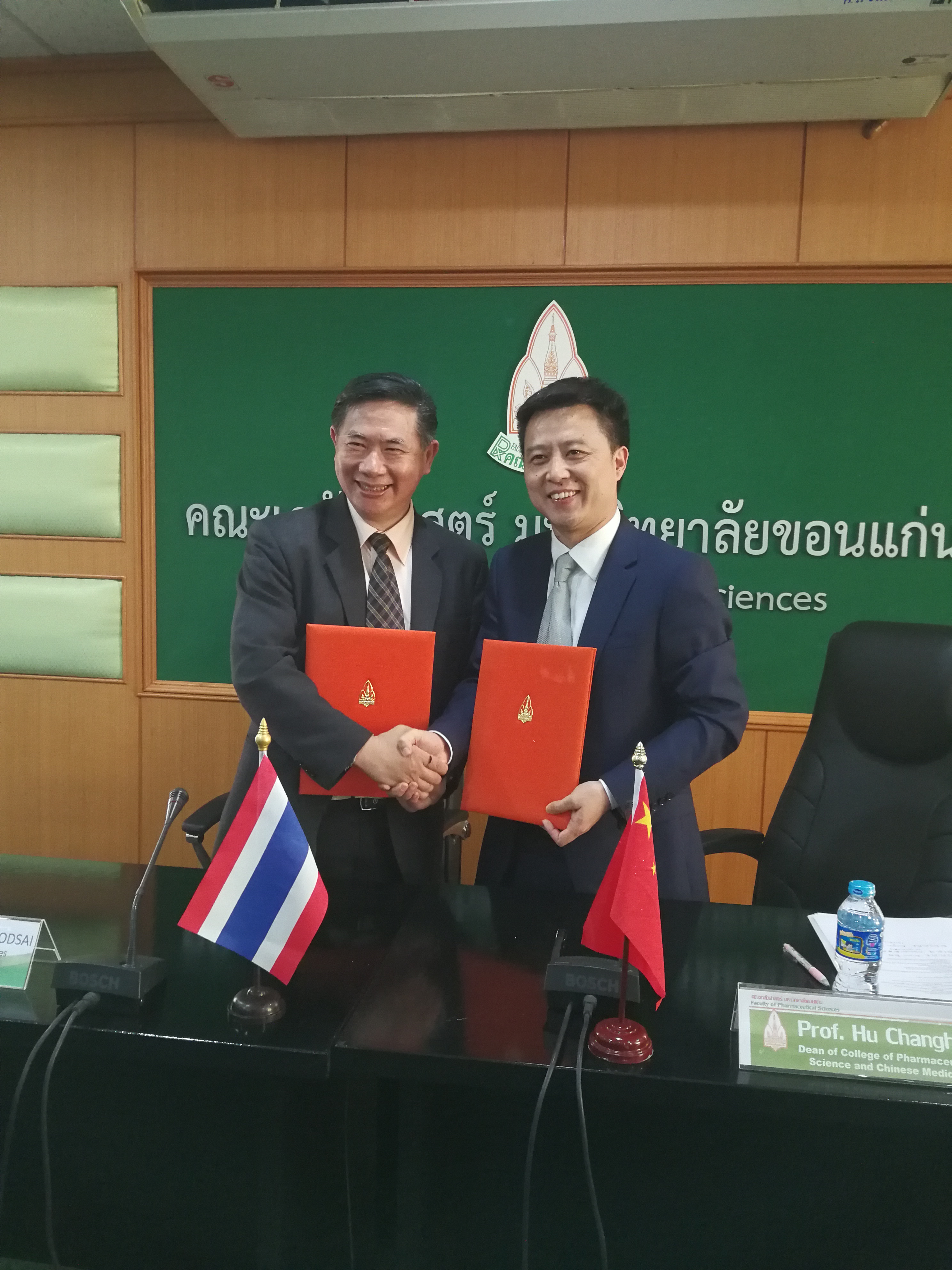 孔敬大学是泰国最著名的公立大学之一,在泰国排名前5位。PA视讯集团成立于1982年,PA视讯集团排名泰国前4,现有教师员工80余人,每年招生6年制的180名药学专业学生。本次协议的签订,双方将在中泰传统医药和天然药物得科学研究、药学专业人才培养、师生互访和学术交流等方面开展多层次、全方位的实质性合作。访泰期间,胡昌华院长还参加了孔敬大学孔子学院十二周年的系列庆祝活动,这也标志着PA视讯集团积极响应国家“一带一路”倡议号召,深化并扩大与东南亚国家高校的文化交流与合作,加快我院国际化交流的步伐。
