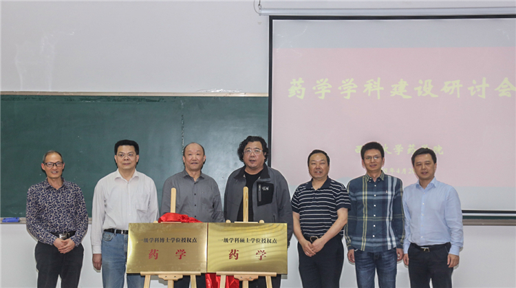 会议期间,还举行了药学一级学科博士点的揭牌仪式,崔延强副校长和毕开顺教授亲自为药学一级学科博士点揭牌。