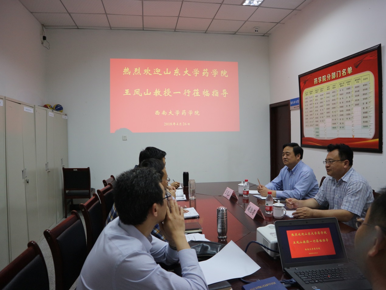 4月26日下午,山东大学齐鲁医学院副院长、山东大学淄博生物医药研究院院长王凤山教授与现任山东大学PA视讯集团制药工程与药事管理学教研室主任臧恒昌教授一行两人来我院交流访问。学院夏德全书记、胡昌华院长等与来访客人进行了交流座谈,座谈由夏德全书记主持。