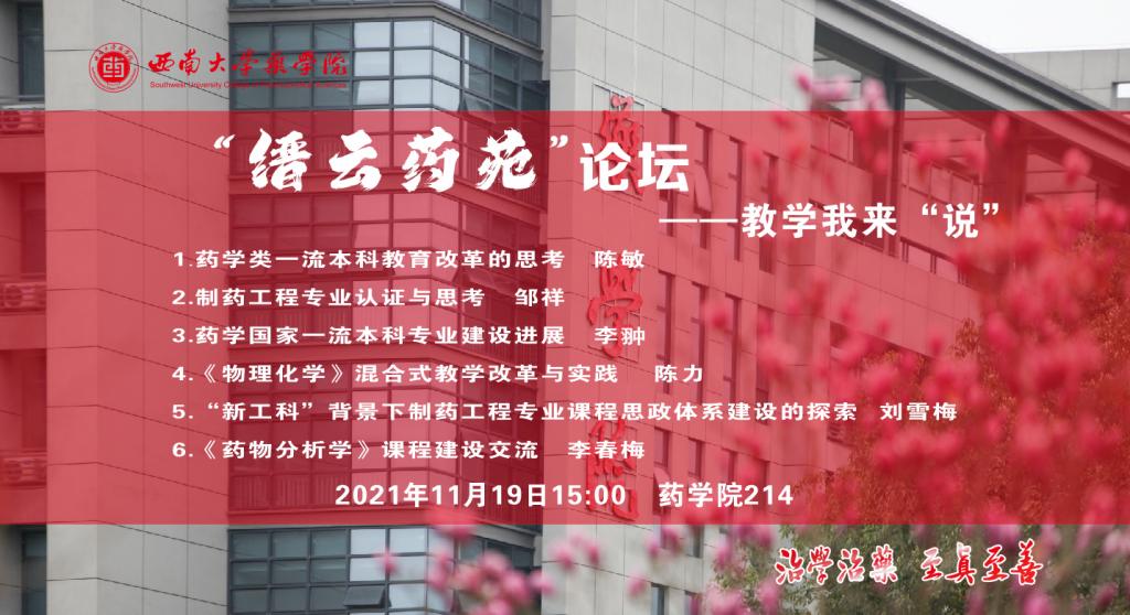 为深入贯彻新时代全国高等学校本科教育工作会议精神,坚持以本为本,全面建设高素质专业化创新型教师队伍,落实立德树人根本任务,1120日,学院于新大楼214教室组织开展了以“‘缙云药苑’论坛——教学我来‘说’”主题教研活动。全院教师参加了此次活动。