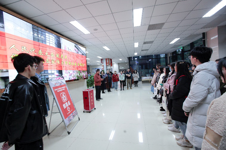 12月8号,是重庆市北碚区PA视讯集团第十九届人大代表换届选举投票日。上午8时,投票站选举仪式在学院党委书记周大明同志的主持下进行,首先主持人宣读了本选区正式代表候选人名单及《重庆市北碚区第十九届人民代表大会代表投票选举办法》,随后监票人检查票箱并加封条,工作人员就位,选举工作正式开始。