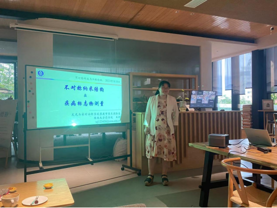 沙龙中,胡凯对经典数学模型进行介绍,重点围绕当前数学领域面临的主要问题进行剖析,旨在推动理论、实验与计算相结合,解决流体力学相关的问题。王健则针对不对称纳米材料展开了详细的讲解,主要探讨了不对称纳米材料的光学性质,不对称纳米材料在疾病标志物的实际应用,目前设计的实验以及实验结果,已经取得的一些成果以及对未来的一些展望等方面展开。与会的师生与胡凯、王健就不对称纳米材料的相关科学问题进行了积极的讨论。