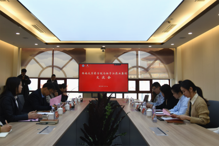 交流座谈会上,扬子江药业集团医药经营有限公司负责人吕国振对陈敏书记一行的到来表示热烈欢迎,他详细介绍了扬子江药业集团“一体两翼”的发展战略,以及企业的人才发展规划和校企合作方向。他表示企业始终坚持中药、化药、生物药三药并举举措,着力布局大健康产业,坚持推进国际化战略发展目标。他希望借助高校科学研究和学生培养优势,为企业输送更多优秀人才。