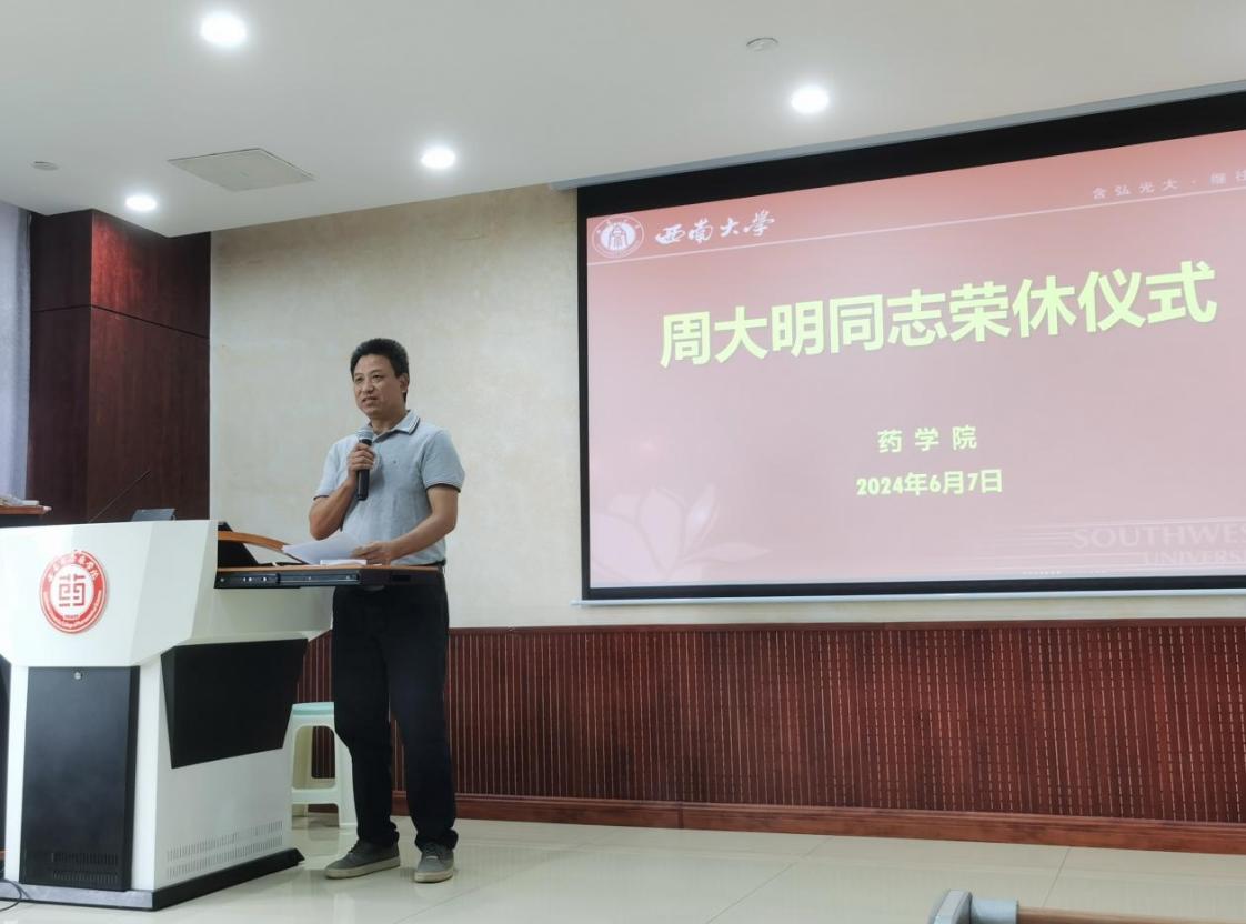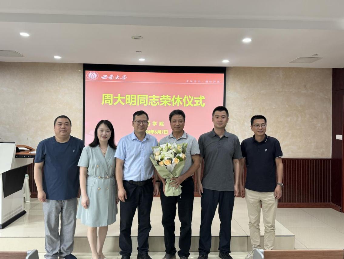 为表达对退休干部的深切关怀和崇高敬意,增强教职工政治上的荣誉感、组织上的归属感、生活上的幸福感,6月7日下午,学院为周大明同志举行了温馨而庄重的荣休仪式。学校人才工作办公室副主任吴中全、学院党政班子和全体教职工参加活动,仪式由学院党委书记陈敏主持。