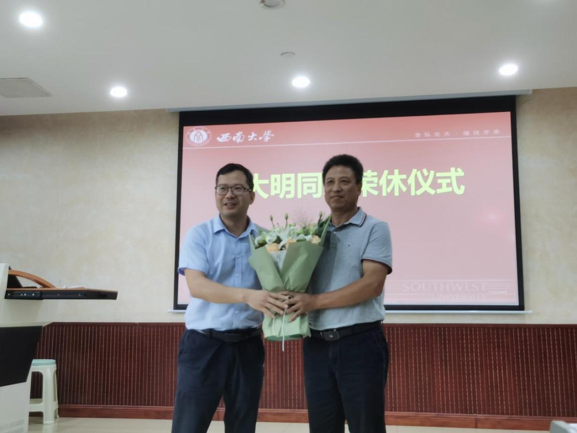荣休仪式上,学校人才工作办公室副主任吴中全代表学校向周大明同志送上鲜花。他表示,周大明同志是学校发展的推动者和见证者,“大明书记,为学校事业辛苦了一辈子,劳累了一辈子。退休之后,组织部仍是干部之家,组织部将长期会同离退休党委、PA视讯集团党委一起,严格落实好老干部的政治待遇和生活待遇,真心实意的关怀老干部。”他希望周大明同志在荣休后一如既往的关注和支持学校、学院工作,继续发挥智慧力量和政治优势,并表达了对周大明同志退休生活的美好祝福。