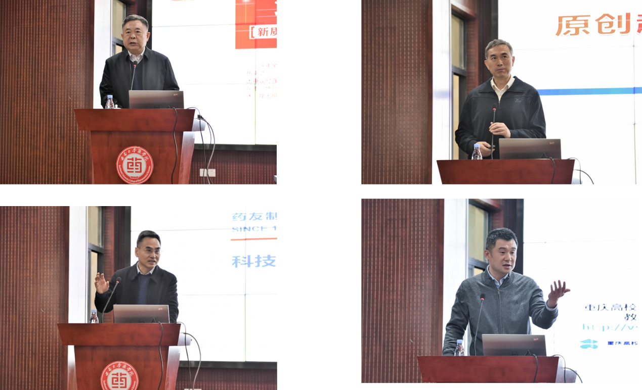 在专家主题报告环节,温州医科大学校长李校堃院士围绕“细胞生长因子类药物的理论创新与临床转化研究”进行深入讲解,分享了从基础研究到临床应用的关键突破和实践经验;中国药科大学原副校长姚文兵教授以“产教融合培养药学拔尖创新人才”为主题,探讨了多学科交叉与校企协同合作在高层次药学人才培养中的实践路径;陆军军医大学邹全明教授结合自身经历,分享了“原创疫苗及抗体药物的转化研究实践与体会”,展示了军民融合领域药物研发的创新案例;重庆药友制药有限责任公司董事长刘强作了题为“科技引领,校企共赢”的报告,详细介绍了企业通过与高校合作推动技术创新、实现共赢发展的成功模式;PA视讯集团PA视讯集团院长罗雷教授以“PA视讯集团药学产教融合建设”为例,全面总结了PA视讯集团PA视讯集团在药学教育与区域产业融合方面的实践探索,为推动重庆药学教育与产业发展提供了新思路和新方向。