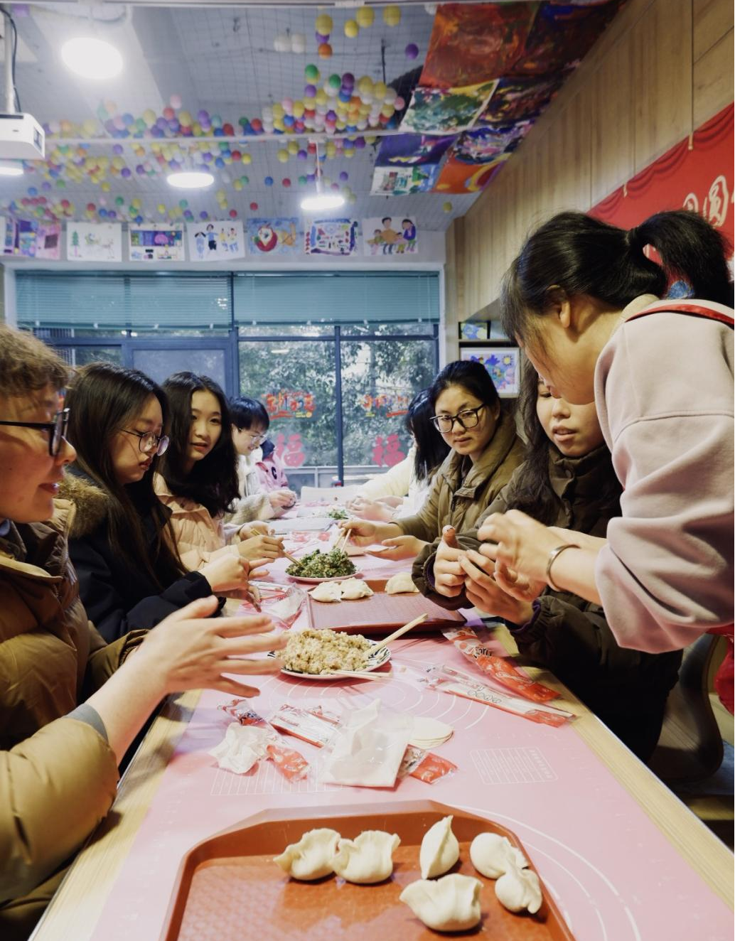 包饺子环节中,大家纷纷动手尝试,尽管有些笨拙,但热情丝毫不减。有的同学把饺子包成了元宝形状,寓意着新的一年财源滚滚;有的则别出心裁,做出了花边饺子,像是一件件精美的艺术品。笑声不断从人群中传来,几位南方的同学表示,虽然家里不常包饺子,但在这样的场合下体验传统文化非常有意义。