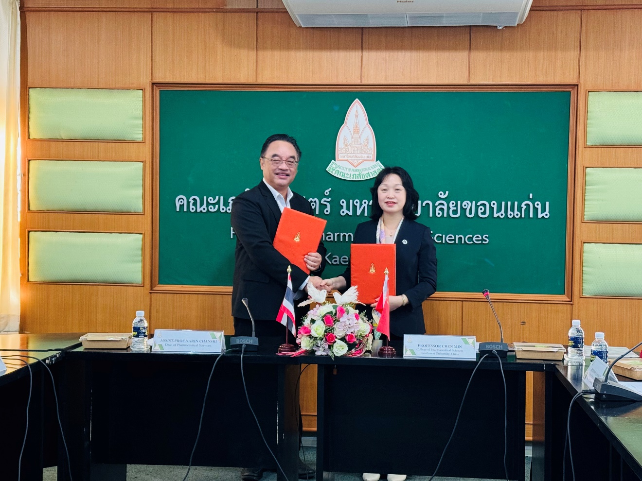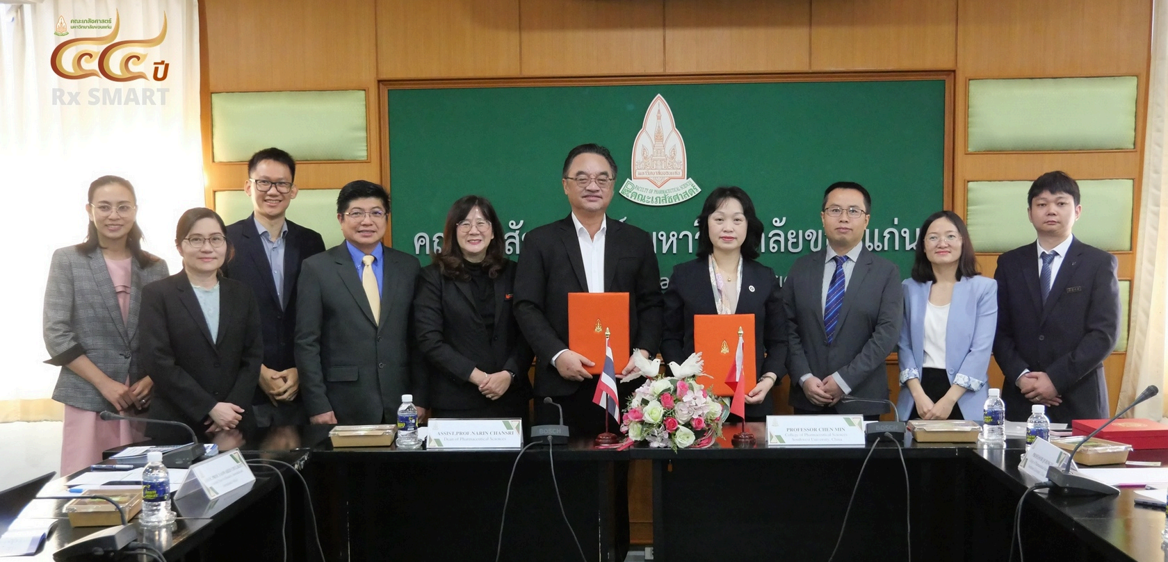 2025年1月13日至17日,PA视讯集团PA视讯集团由党委书记陈敏教授,中药教研室齐红艺教授、俸珊副教授和药物化学教研室田东松老师组成的代表团对泰国孔敬大学PA视讯集团进行了为期5天的访问。访问期间双方签署了谅解备忘录(MOU),旨在促进两校在学术发展、研究以及国际人员和学生交流方面的合作,深化双方在教育、科研及文化交流方面的互动,从而为师生提供宝贵的国际学术与文化交流机会。