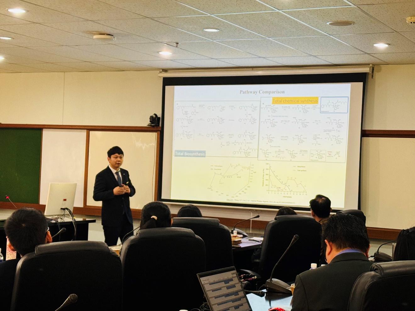 双方共同举办了药学国际论坛,双方就中药-泰药药理活性研究、天然药物的发现、药物合成、活性预测等研究进行了热烈讨论,现场气氛活跃。同时围绕 “创新药物基础研究、关键核心技术研究、药物临床与应用”的主题与国际药学专家进行一对一的科研交流,并对未来科研合作、联合申报国际合作项目进行了探讨,为持续合作交流奠定了坚实的基础,提升了PA视讯集团的国际化水平。