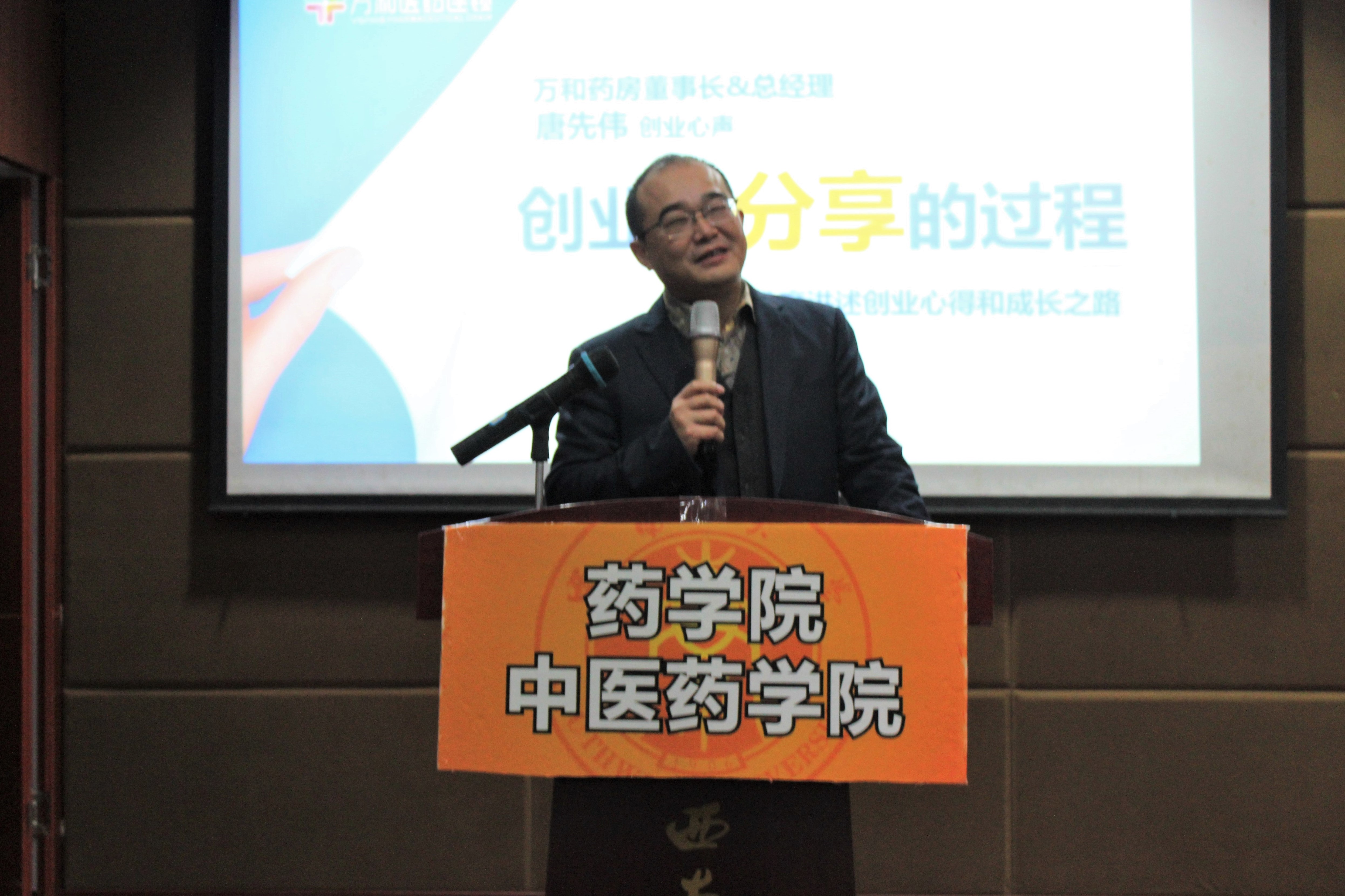 最后,万和药业董事长唐先伟还和同学们分享了名为《创业是分享的过程》的精彩报告。