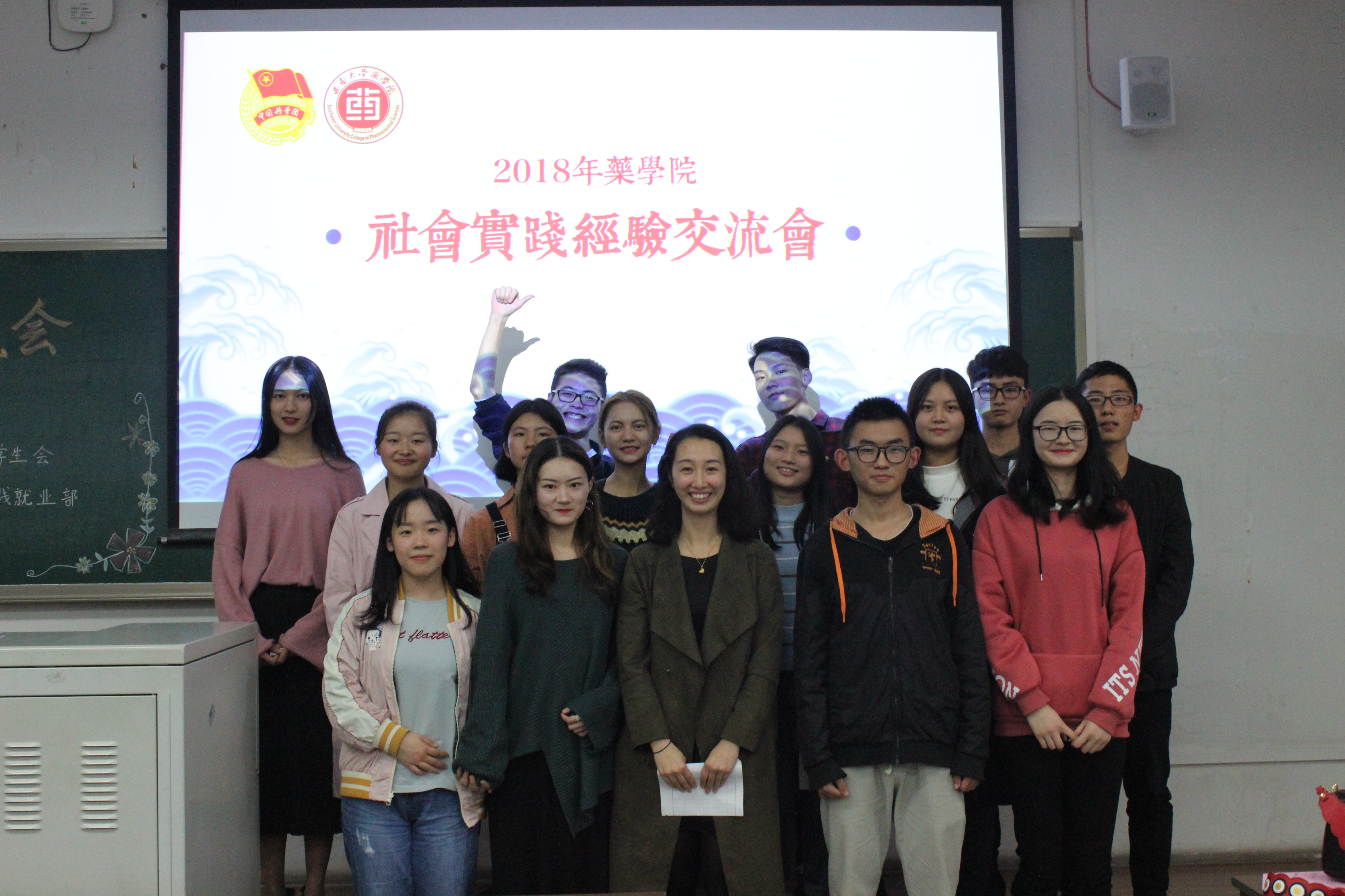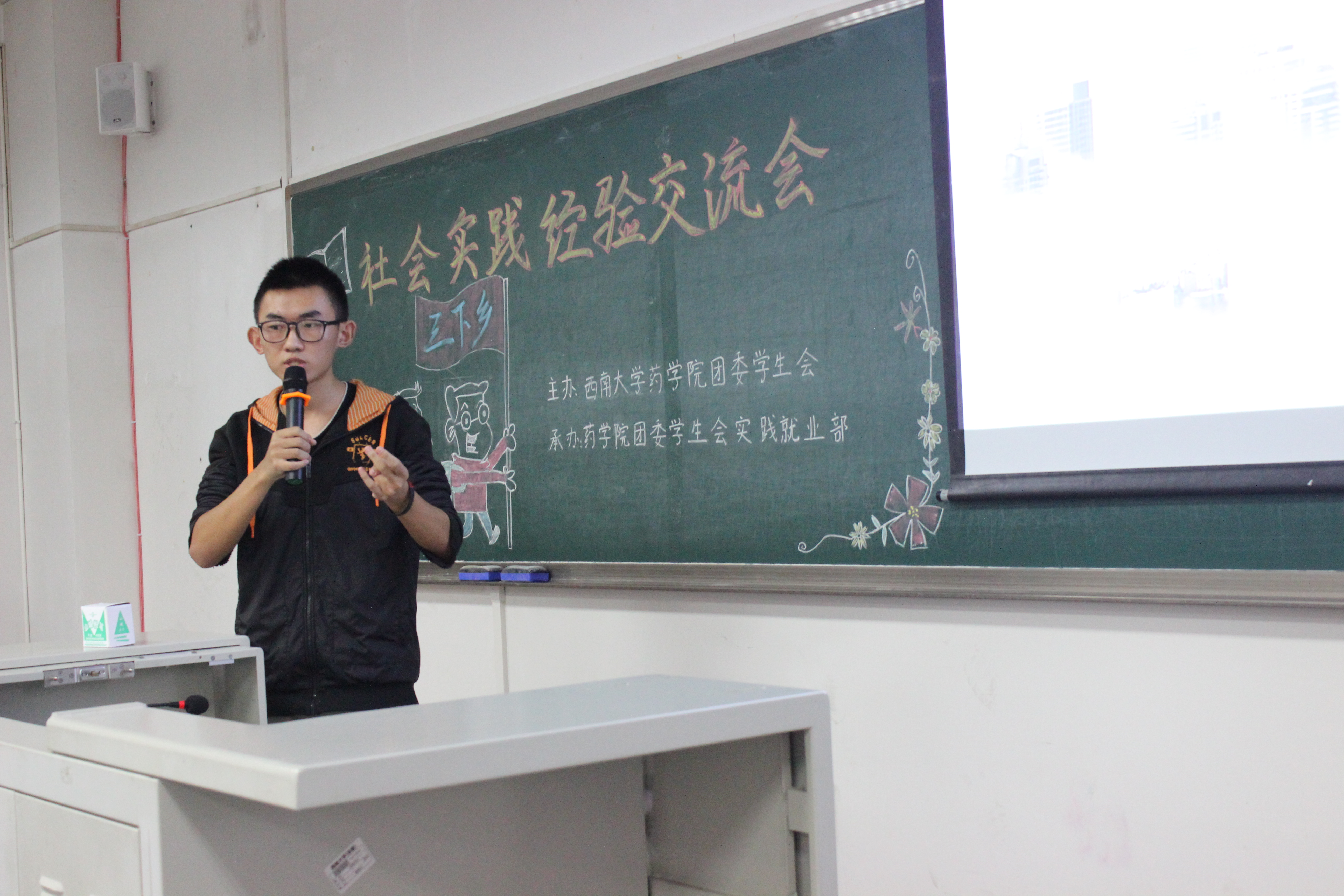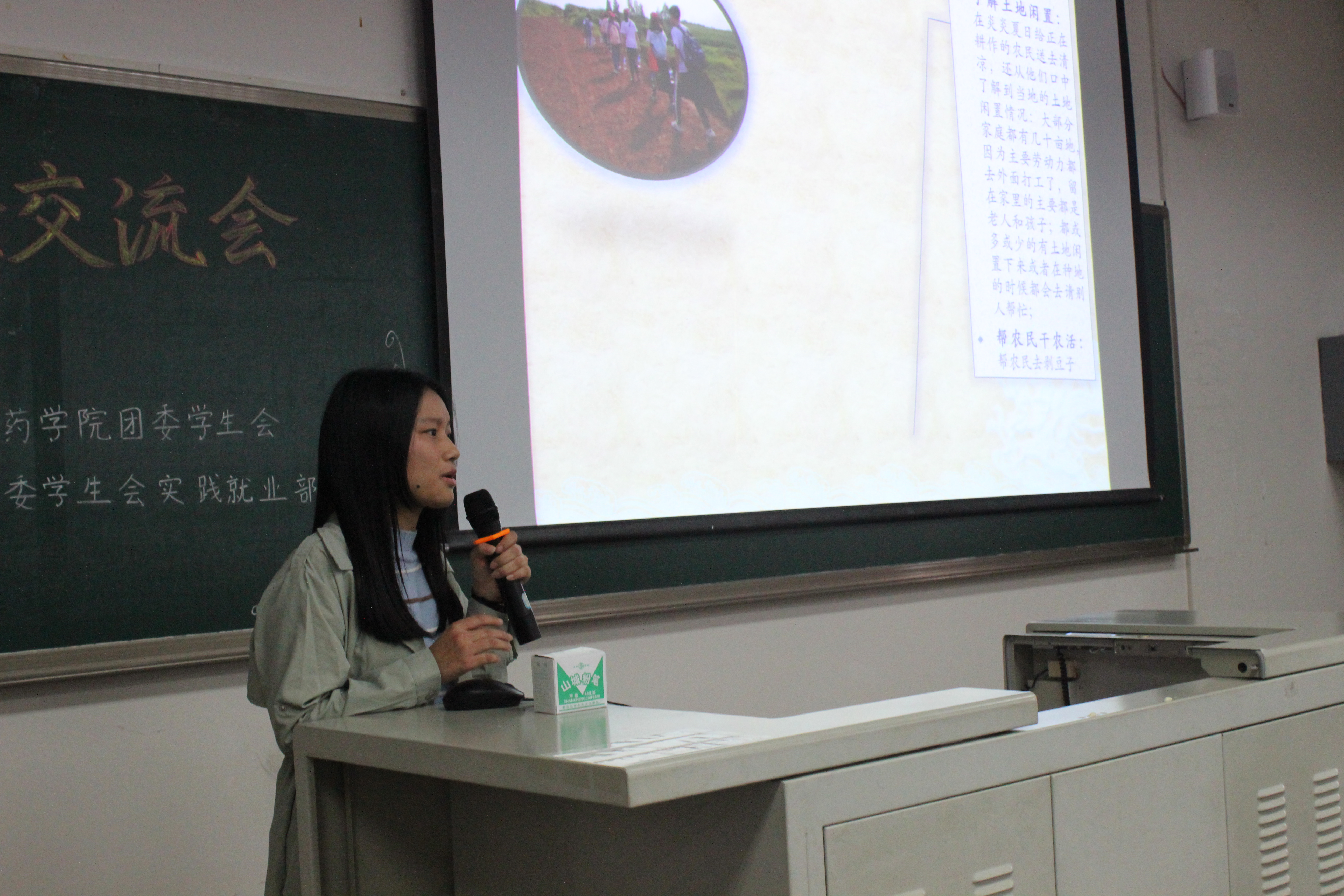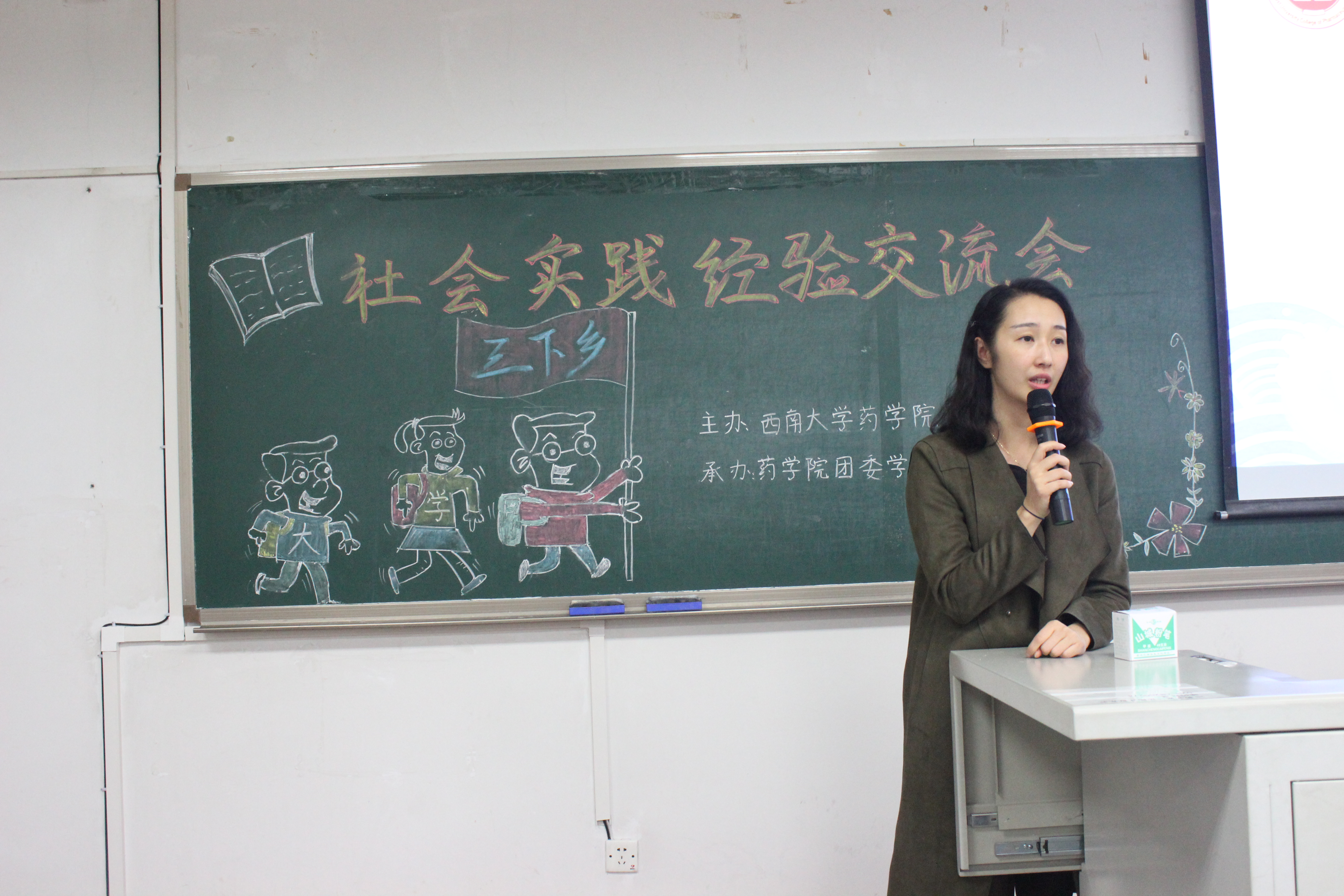 主持人宣布交流会开始后,团委书记肖媛媛老师向同学们介绍了学院社会实践活动以及药房认知和药厂认证实习等各项要求,并对社会实践活动提出建议与注意事项。